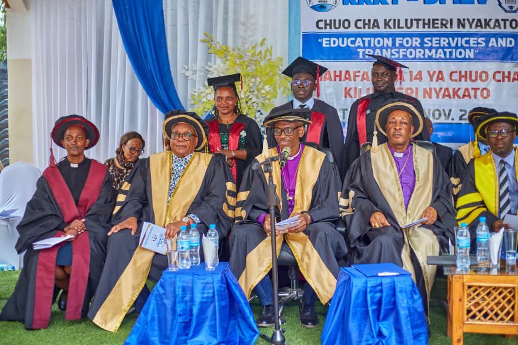 MHAFALI YA 14 YA CHUO CHA BIBLIA CHA KILUTHERI NYAKATO - MWANZA YAFANYIKA,WAHITIMU 41 WAASWA KUZINGATIA MAADILI Mahafali ya 14 ya chuo Cha kilutheri Nyakato - Mwanza yamefanyika Jumamosi hii jijini Mwanza yakihusisha wanafunzi 9 wa Diploma ya Theolojia ,Certificate ya Theolojia 21 ,Wainjilisti 7 na Parishworkers 4. Mgeni Rasmi katika mahafali hayo Askofu Mushendwa kutoka Dayosisi ya Magharibi Kigoma na Mwenyeji wake Mkuu wa chuo cha Biblia Cha Kilutheri Nyakato Askofu Oscar Itael Lema ambaye ni Askofu wa Dayosisi Mashariki ya ziwa Viktoria Wageni wengine waliohudhuria Mahafali hayo ni Makamu Mkuu wa Chuo Kikuu Iringa-Prof Edward Hoseah, Makamu Mkuu wa chuo Nyakato Mchg. Mimii Brown, Mwenyekiti wa Bodi ya chuo Dr. Emmanuel Lwankomezi pamoja na Katibu Mkuu wa DMZV Joshua Kyelekule. Na hizi ni picha za matukio mbalimbali za mahafali